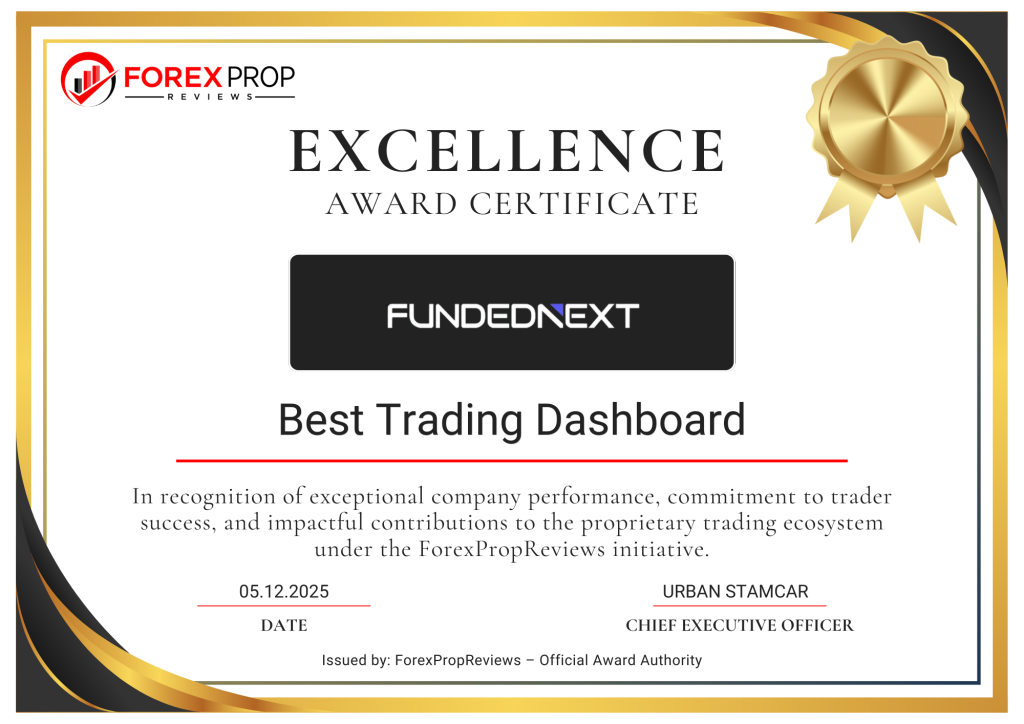FundedNext has been recognized as the winner of the “Best Trading Dashboard” award by Forex Prop Reviews in its annual industry awards.